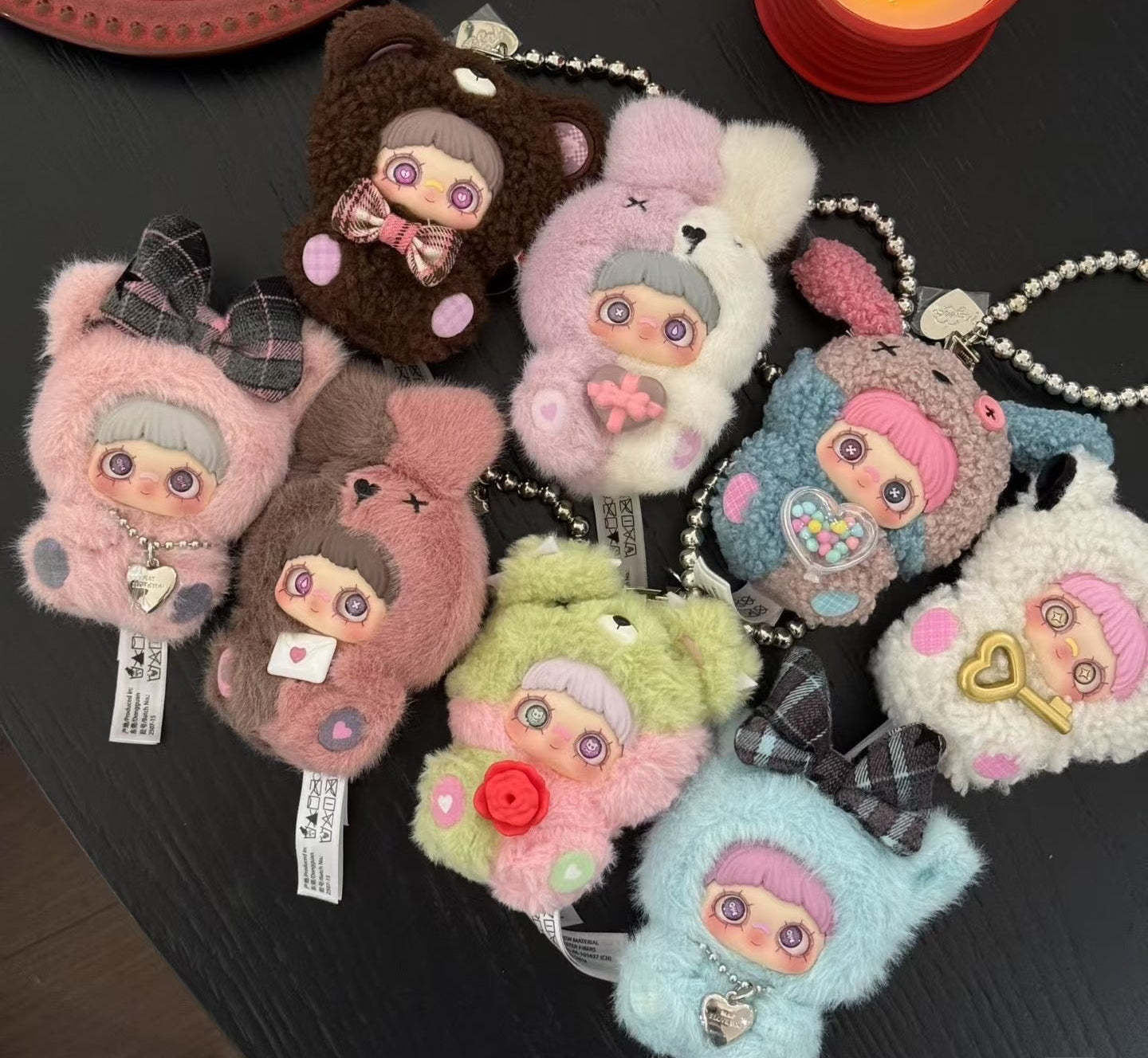 Each character is carefully crafted with soft plush material and tiny cute accessories like hearts, love letters, and gifts. Measuring approximately 10–13 cm, these collectible figures are perfect for display, keychains, or gifting to friends and loved ones.